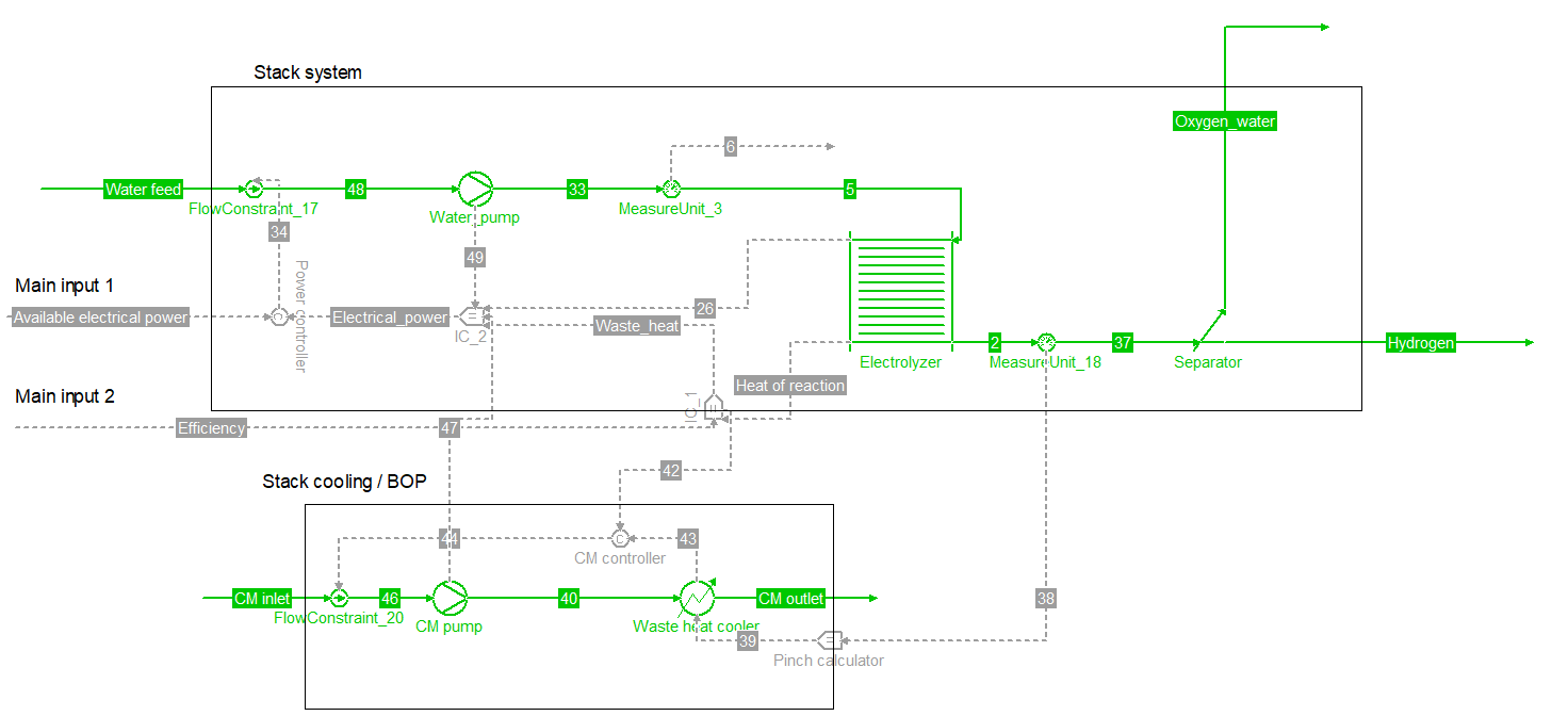 Simple electrolyzer flowsheet with BOP cooling | ||
